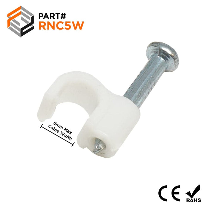 Nail In Cable Clips, Ethernet Cable Nails Tacks, Round, 5mm, 0.20", White, 100 Pieces - RNC5W