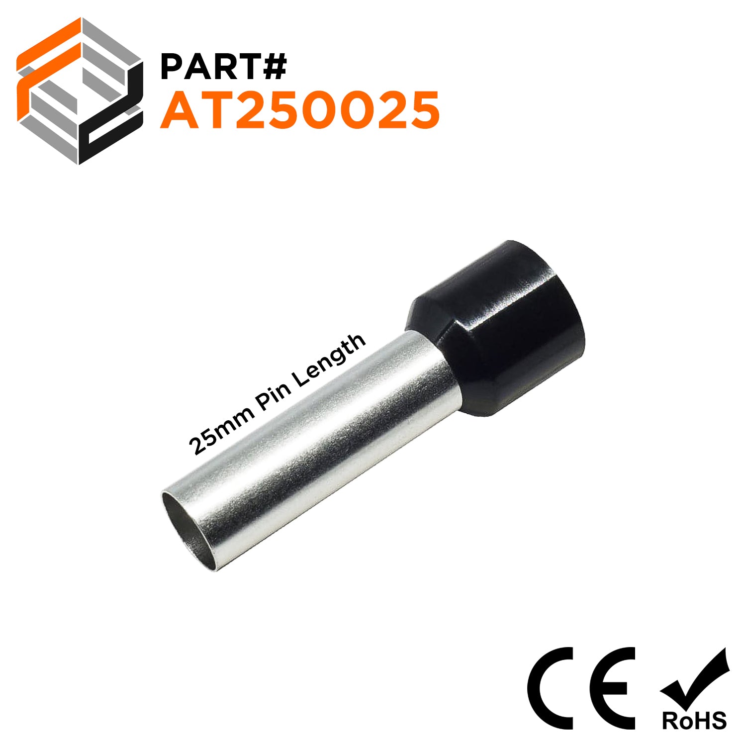 AT250025 - 4 AWG Insulated Wire Ferrules, 25mm Pin, Black, 100 Pieces