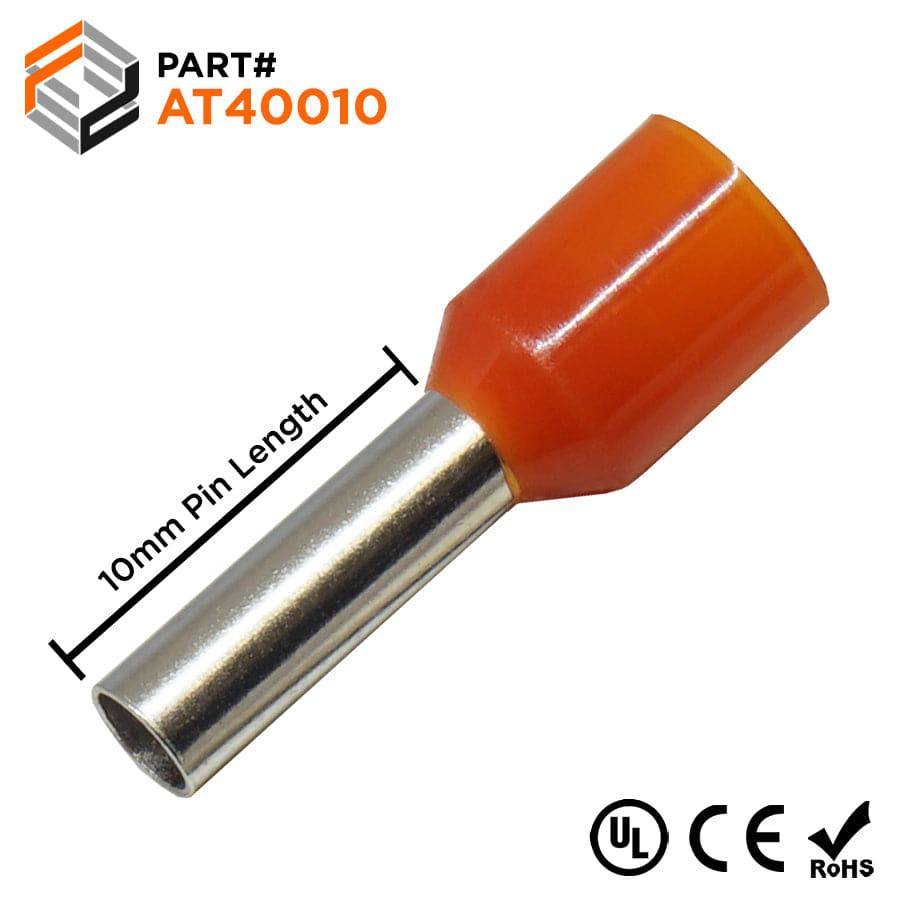 AT40010 - 12 AWG Insulated Wire Ferrules, 10mm Pin, Orange, UL Recognized, 500 Pieces