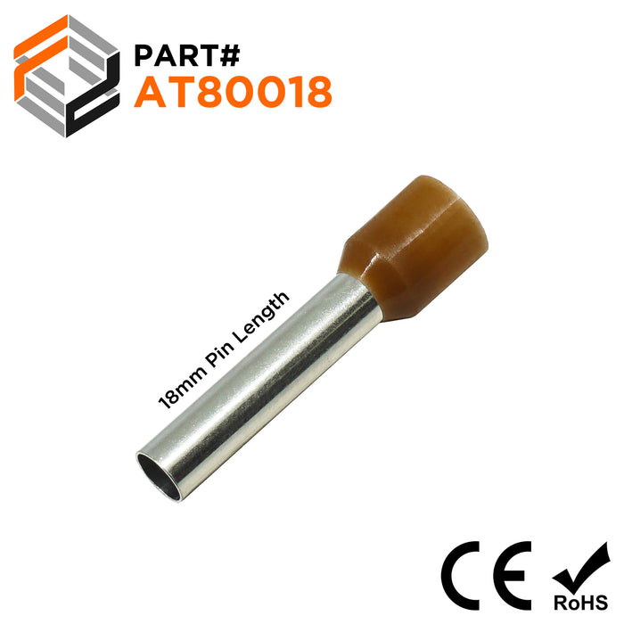 AT80018 - 8 AWG (Small Diameter) Insulated Wire Ferrules, 18mm Pin, Brown, 100 Pieces