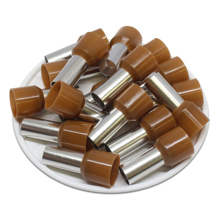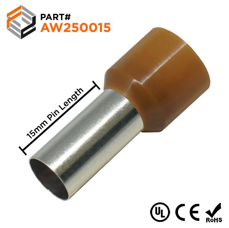 AW250015 - 4 AWG Insulated Wire Ferrules, 15mm Pin, Brown, UL Recognized, 100 Pieces