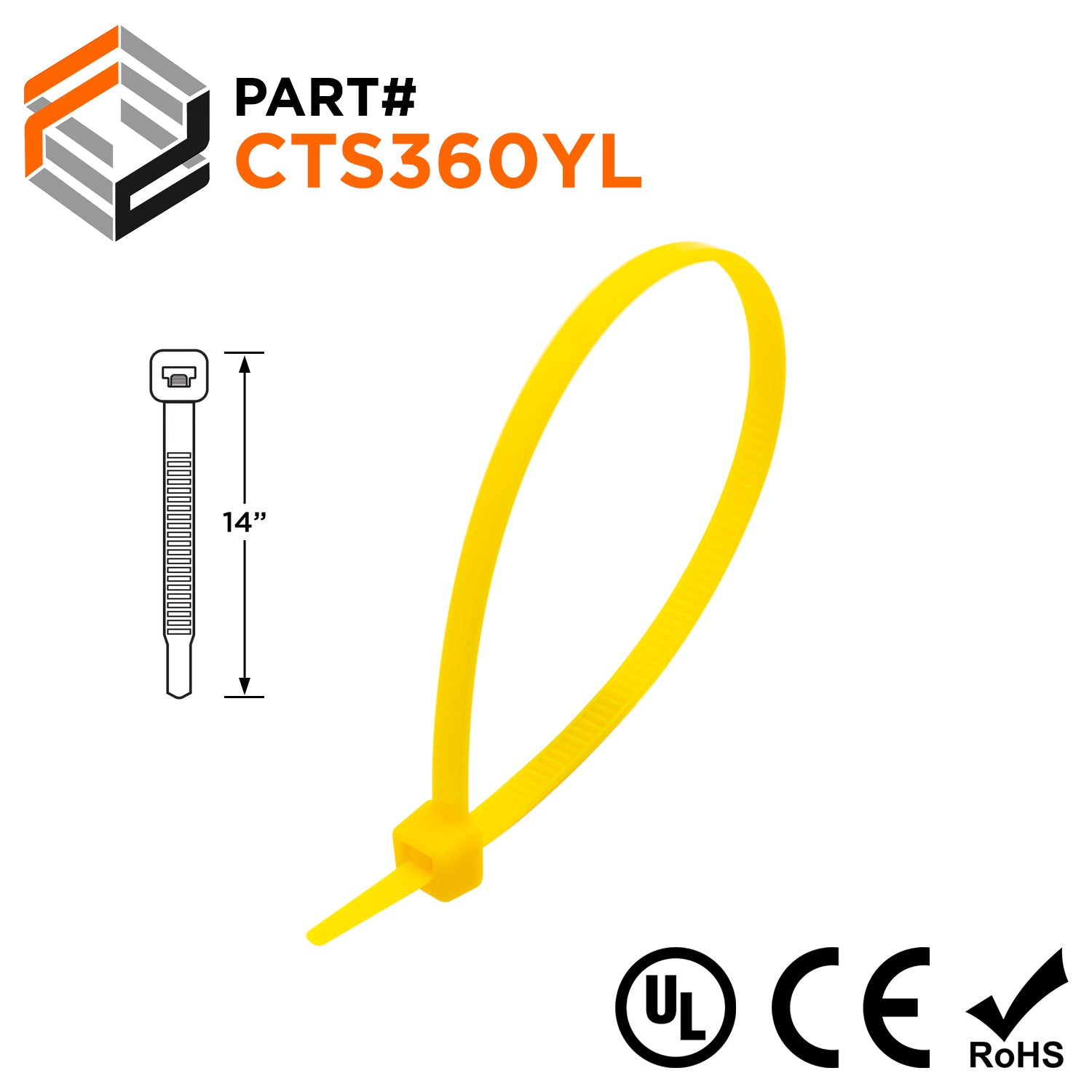 CTS360YL - 14" Standard Cable Ties, 50-lb Tensile Strength, Yellow, 100 Pieces