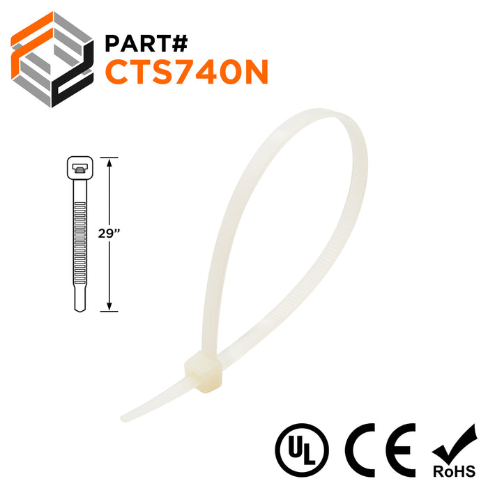 CTS740N - 29" Standard Cable Ties, 50-lb Tensile Strength, Natural, UL Recognized, 100-Pack