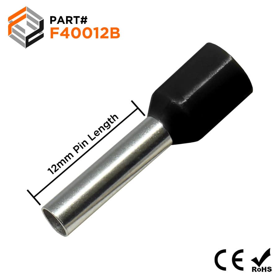 F40012B - 12 AWG Insulated Wire Ferrules, 12mm Pin, Black, 500 Pieces