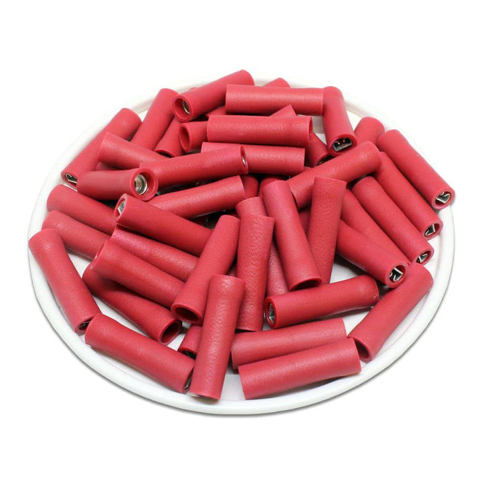 FDFD1-110(5) - 22 to 16 AWG Vinyl PVC Insulated Quick Disconnects, Female, Red, Fully Insulated, Double Crimp, 100 Pieces