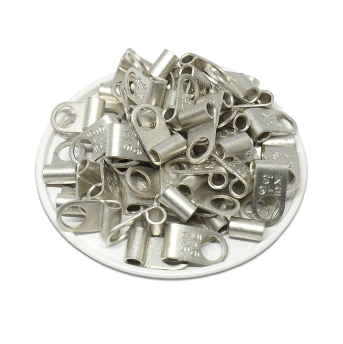 Non-insulated flag terminals with ring tongue enable the user to create a 90° connection without bending the conductor..