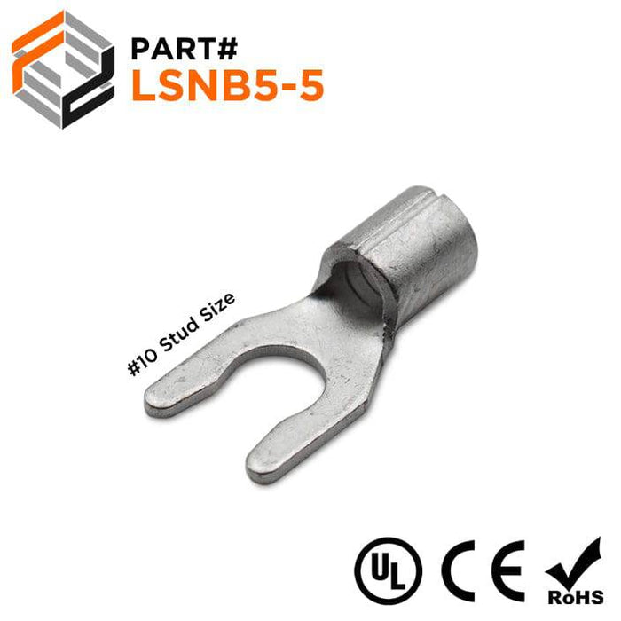 12-10 AWG Non Insulated Locking Spade Terminals, #10 Stud, UL Approved, 100 Pieces - LSNB5-5