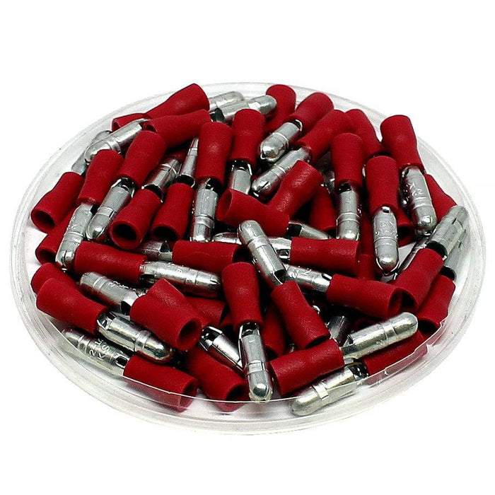 MPD1-156 - 22 to 16 AWG Vinyl PVC Insulated Male Bullet Connectors, Double Crimp, Red, 100 Pieces