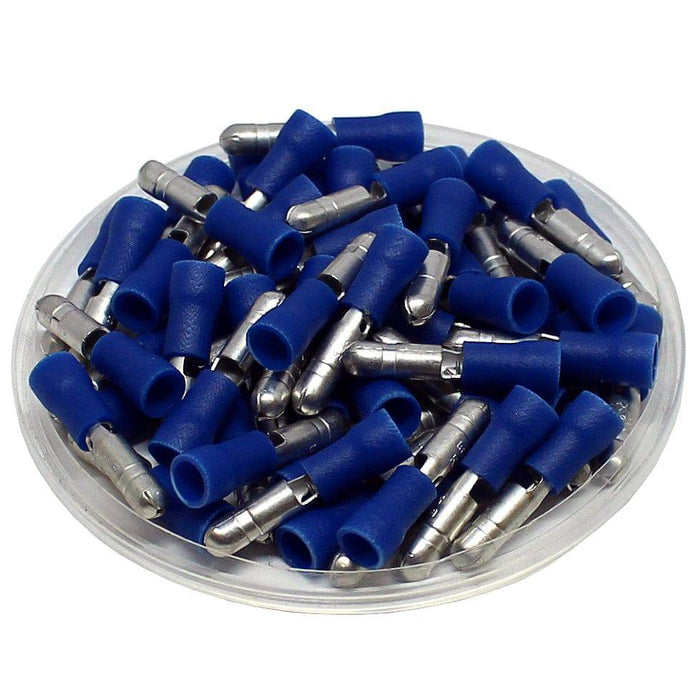 MPD2-156 - 16 to 14 AWG Vinyl PVC Insulated Male Bullet Connectors, Double Crimp, Blue, 100 Pieces