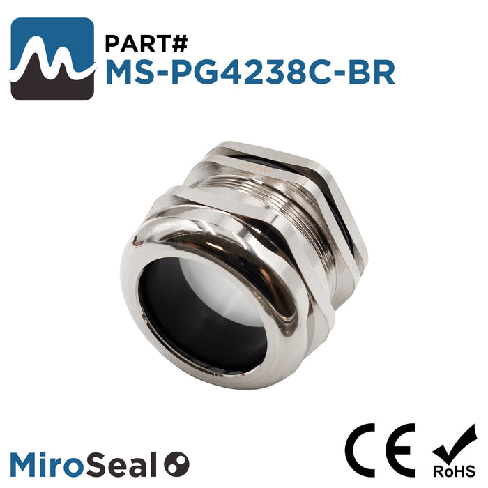 MS-PG4238C-BR - MiroSeal PG42 Cable Gland, Nickel Plated Brass, Range: 1-1/4" to 1-1/2", 1 Piece