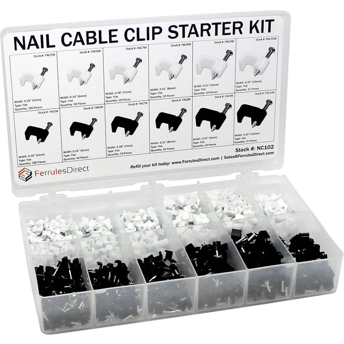 - Description: These convenient starter kits contain a wide variety of Flat nail cable clips