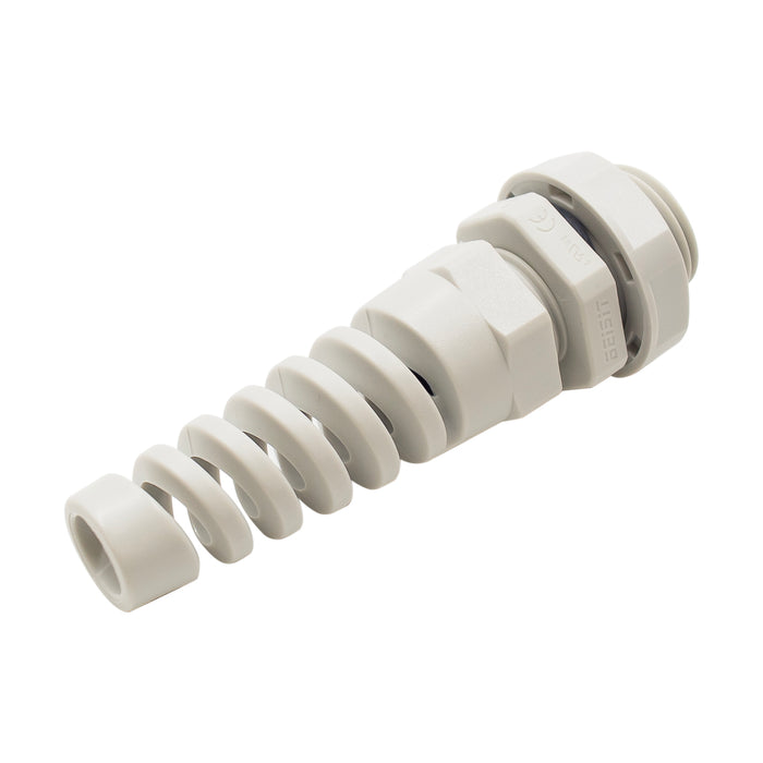 N3808SRGY - 3/8" NPT Thread Nylon Cable Gland with Strain Relief, Gray, Range: 3/16" to 5/16", UL Listed, IP68, IP69K - 1 Piece