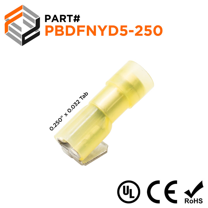 PBDFNYD5-250 - Nylon Fully Insulated Double Crimp Piggyback Terminals - 12-10 AWG - Yellow