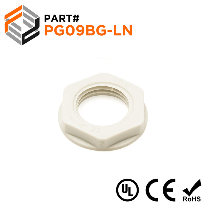 PG9 Thread Nylon Lock Nut for PG Cable Glands, Beige, UL Approved, 1 Piece - PG09BG-LN