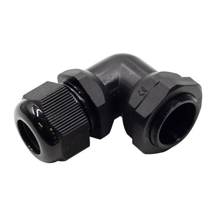 Right Angle PG Thread Black Cable Gland (Includes both locknut and washer)