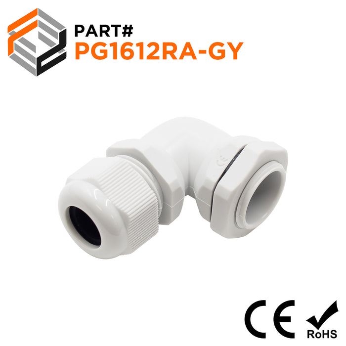 PG16 Right Angle Cable Gland - 7-12mm - Gray - PG1612RA-GY
