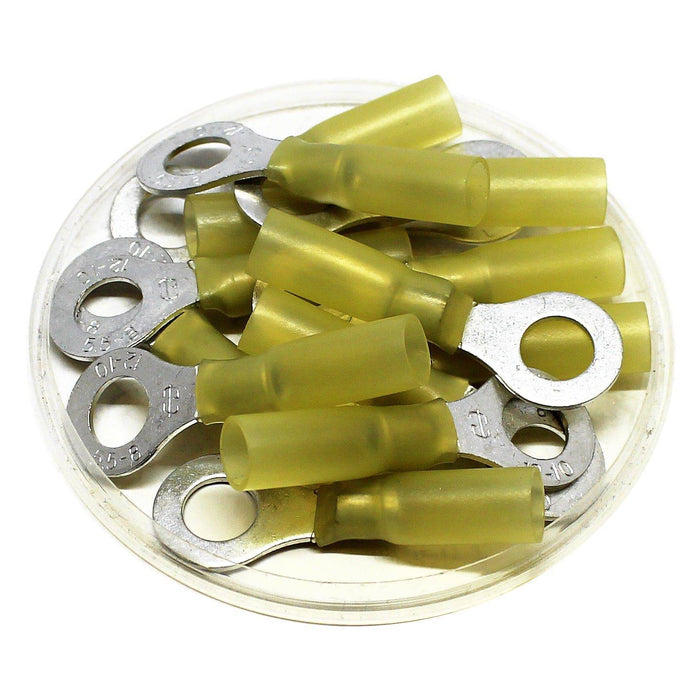 RHT5-8 - 12 to 10 AWG Heat Shrink Ring Terminals, 5/16" Stud, Polyethylene, 10 Pieces