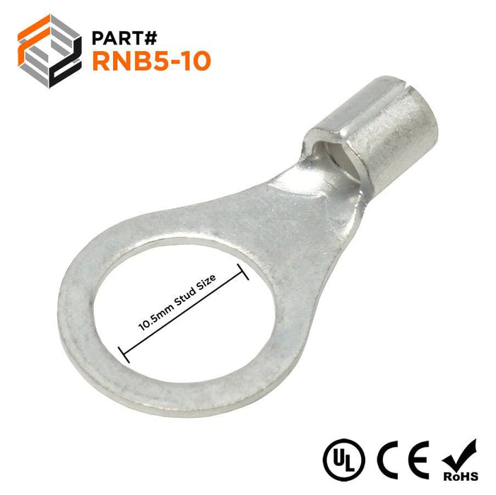 RNB5-10 - 12 to 10 AWG Non Insulated Ring Terminals, 3/8" Stud, UL Approved, 100 Pieces