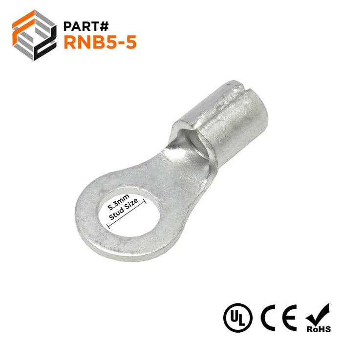RNB5-5 - 12 to 10 AWG Non Insulated Ring Terminals, #10 Stud, UL Approved, 100 Pieces
