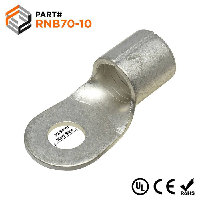 RNB70-10 - 2/0 AWG Non Insulated Ring Terminals, 3/8" Stud, UL Approved, 10 Pieces