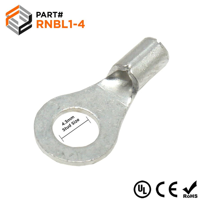 RNBL1-4 - 22 to 16 AWG Non Insulated Ring Terminals, #8 Stud, UL Approved, 100 Pieces