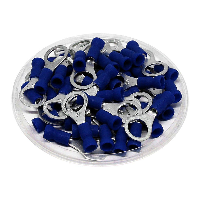 RVE2-6 - 16 to 14 AWG Vinyl Insulated Easy Entry Ring Terminals, 1/4" Stud, Butted Seam, 100 Pieces