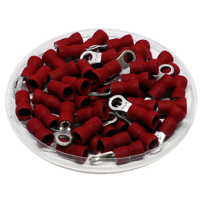 RVEL1-4 - 22 to 16 AWG Vinyl Insulated Easy Entry Ring Terminals, #8 Stud, Butted Seam, 100 Pieces
