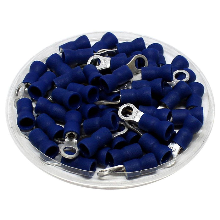 RVEL2-37 - 16 to 14 AWG Vinyl Insulated Easy Entry Ring Terminals, #6 Stud, Butted Seam, 100 Pieces