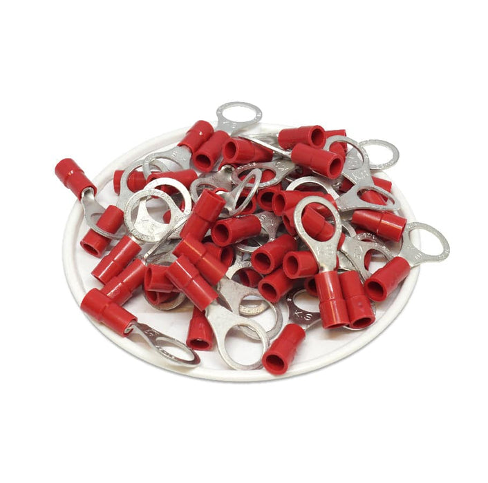 RVY1-8 - 22 to 16 AWG Molded PVC Vinyl Insulated Ring Terminals, Easy Entry, 5/16" Stud, 100 Pieces