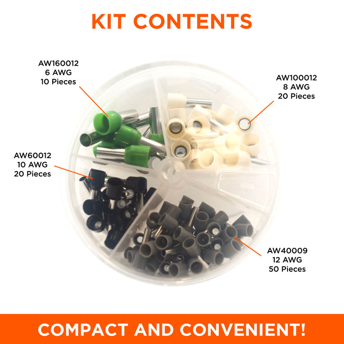 SK1206W - 12 to 6 AWG Single Insulated Wire Ferrules Mini Kit, 100 Pieces, Series W, 1 Kit