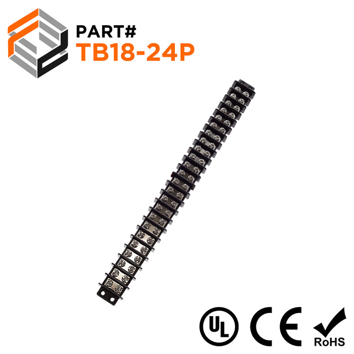 TB18-24P - Barrier Strip Terminal Block, Terminal Strip, 24 Pole, Double Row, 20A, 300V, UL Approved, 1 Piece