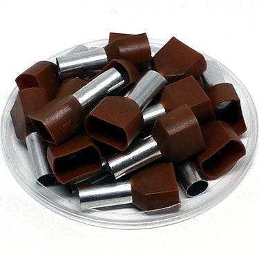 TT100018 - 2x8 AWG (18mm Pin) Twin Wire Ferrules - Brown, 100 Pieces