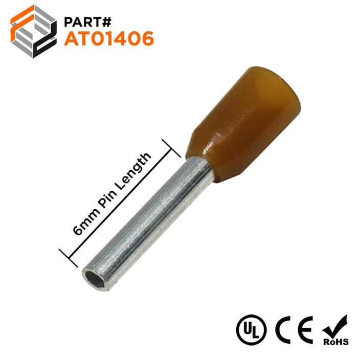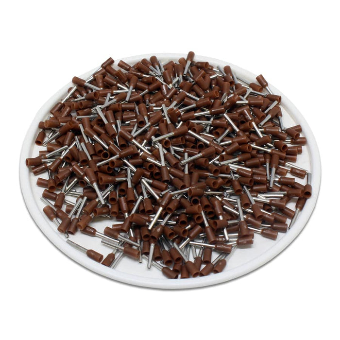 AT01406 - 26 AWG Insulated Wire Ferrules, 6mm Pin, Brown, 500 Pieces