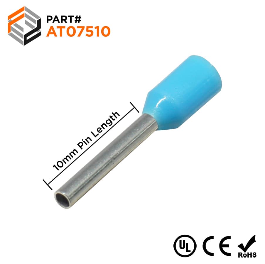 AT07510 - 20 & 18 AWG Single Insulated Wire Ferrules, 10mm Pin, Light Blue, UL Recognized, 500 Pieces
