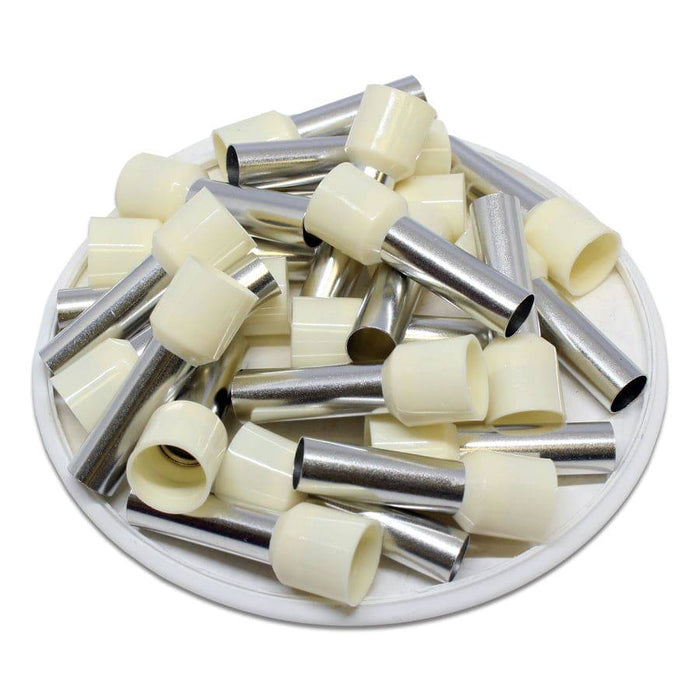 AT160018 - 6AWG Insulated Wire Ferrules, 18mm Pin, White, UL Recognized, 100 Pieces
