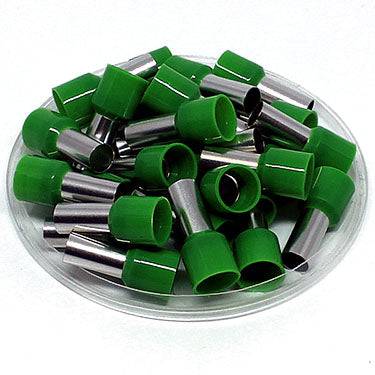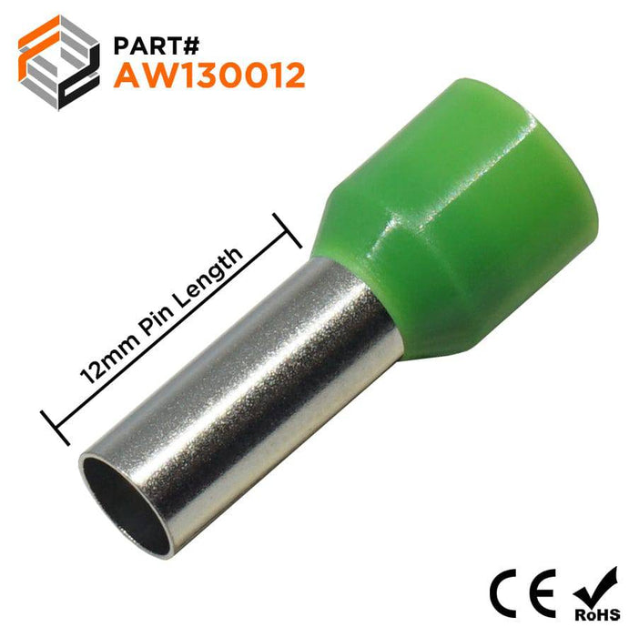 AW130012 - 6 AWG (Small Diameter) Insulated Wire Ferrules, 12mm Pin, Green, 100 Pieces