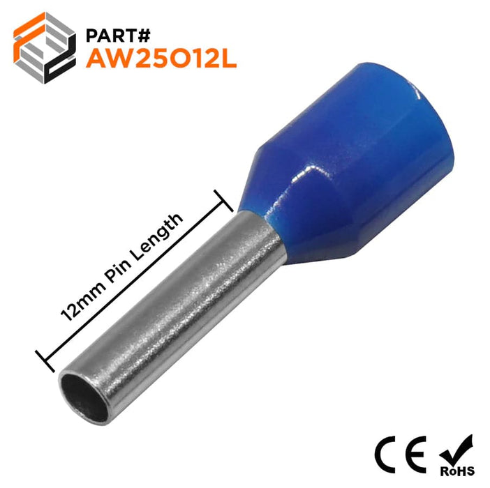 AW25012L - 14 AWG Insulated Wire Ferrules, 12mm Pin, Blue, Wide Collar, 500 Pieces