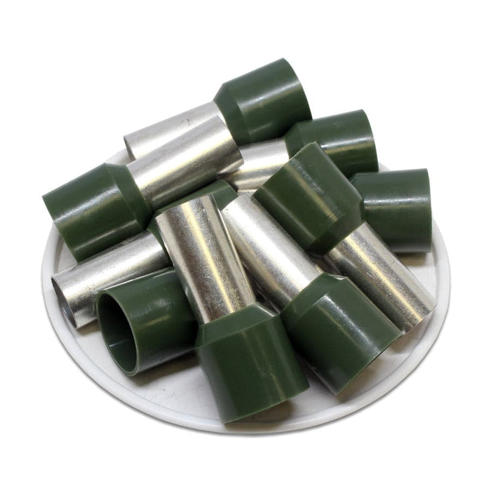 AW500020 - 1 AWG Single Insulated Wire Ferrules, 20mm Pin, Olive Green, UL Recognized, 50 Pieces