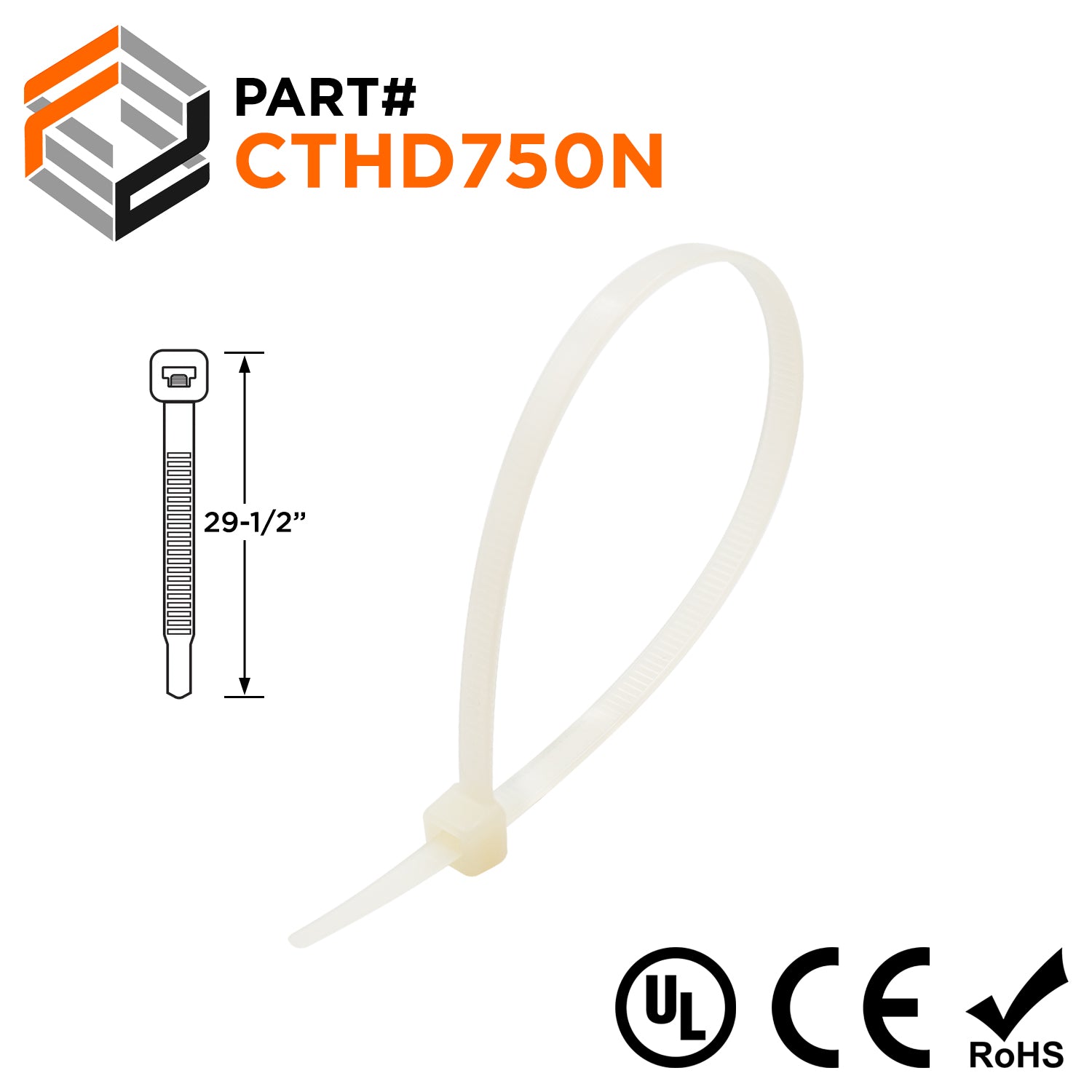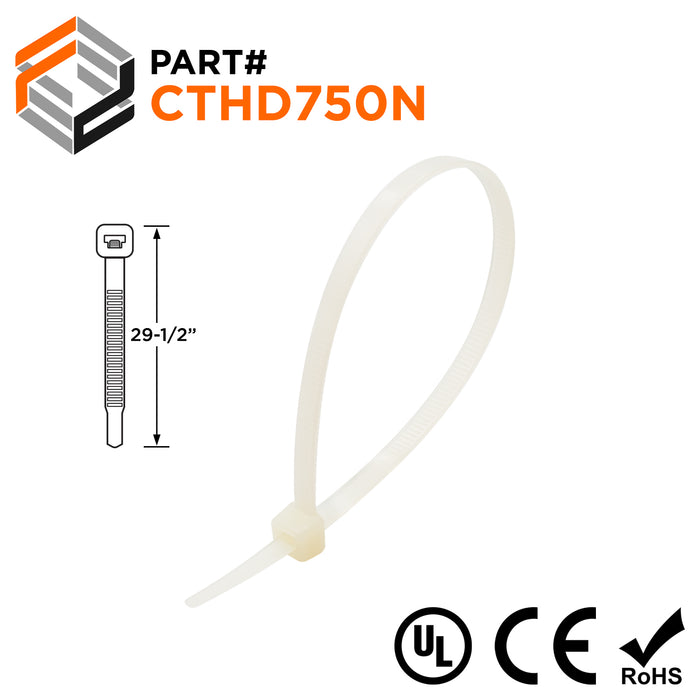 CTHD750N - 29-1/2" Light Heavy Duty Cable Ties, 120-lb Tensile Strength, Natural, 100-Pack