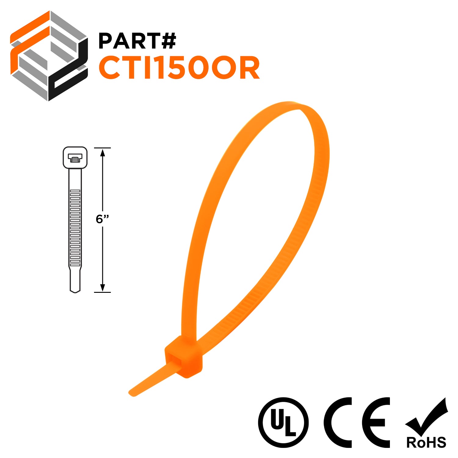 CTI150OR - 6" Intermediate Cable Ties, 40-lb Tensile Strength, Orange, 100-Pack