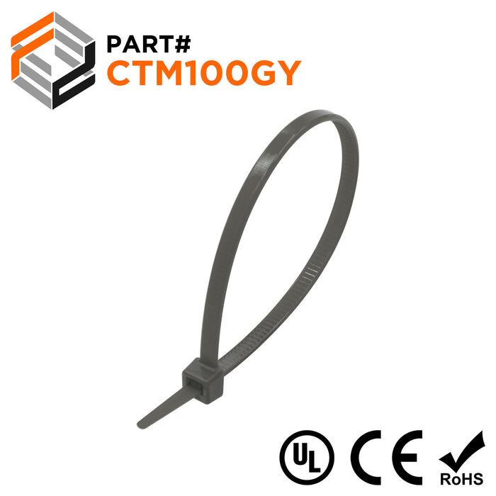 CTM100GY - 4" Miniature Cable Ties, 18-lb Tensile Strength, Gray, 100 Pieces