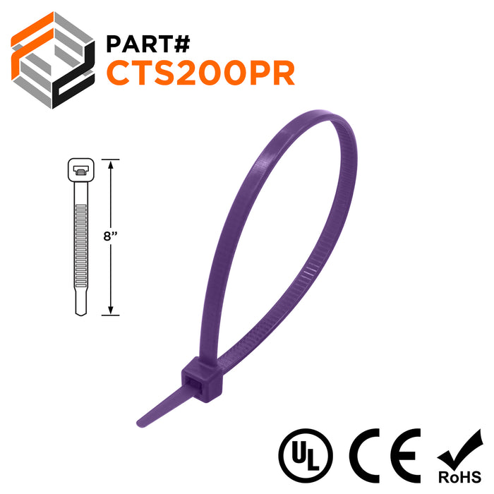 CTS200PR - 8" Standard Cable Ties, 50-lb Tensile Strength, Purple, 100 Pieces