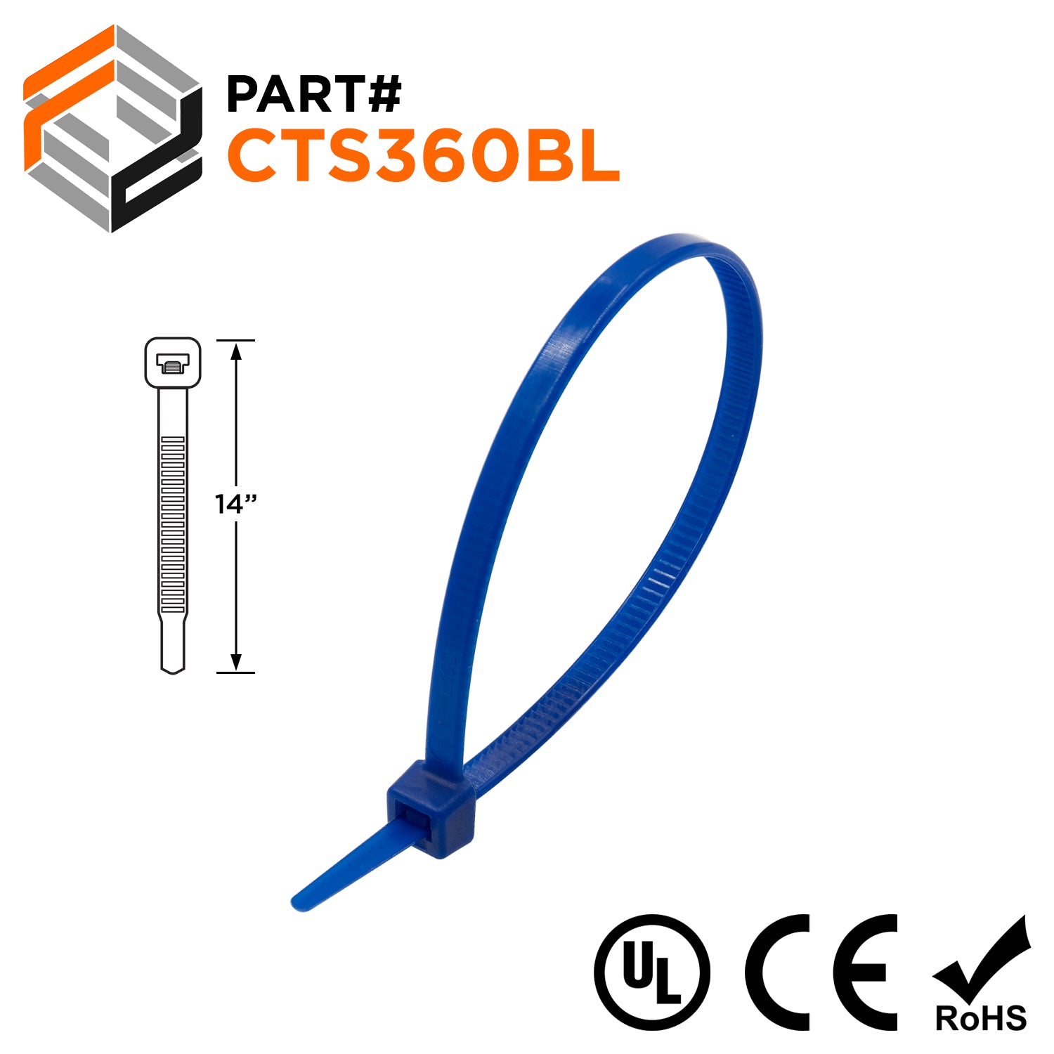 CTS360BL - 14" Standard Cable Ties, 50-lb Tensile Strength, Blue, 100 Pieces