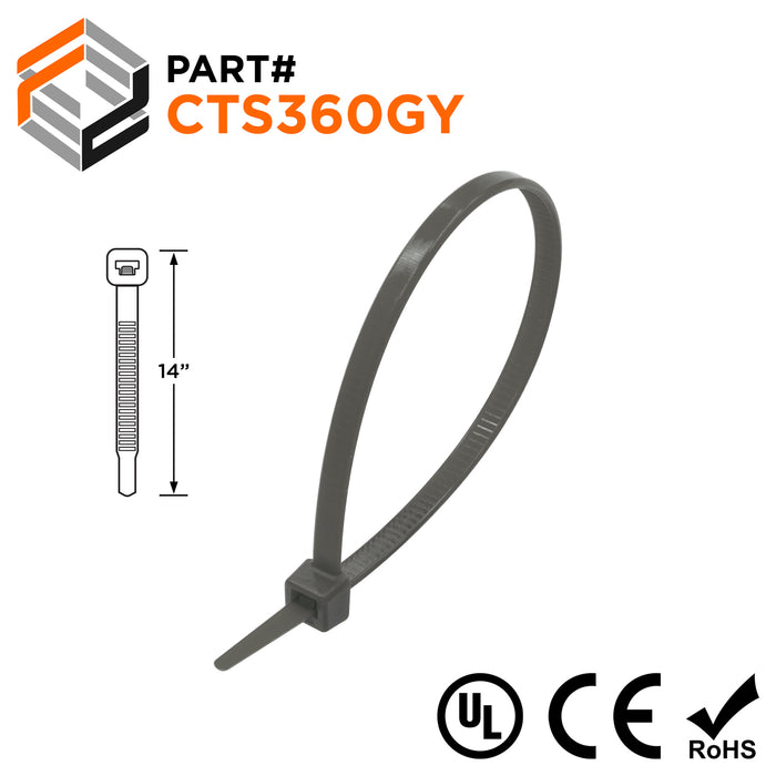 CTS360GY - 14" Standard Cable Ties, 50-lb Tensile Strength, Gray, 100 Pieces