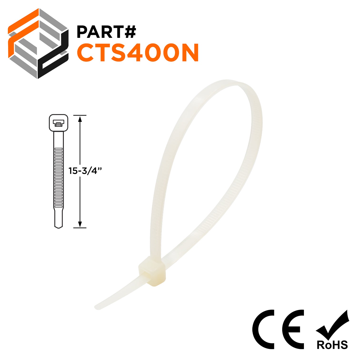 CTS400N - 15-3/4" Standard Cable Ties, 50-lb Tensile Strength, Natural, 100 Pieces