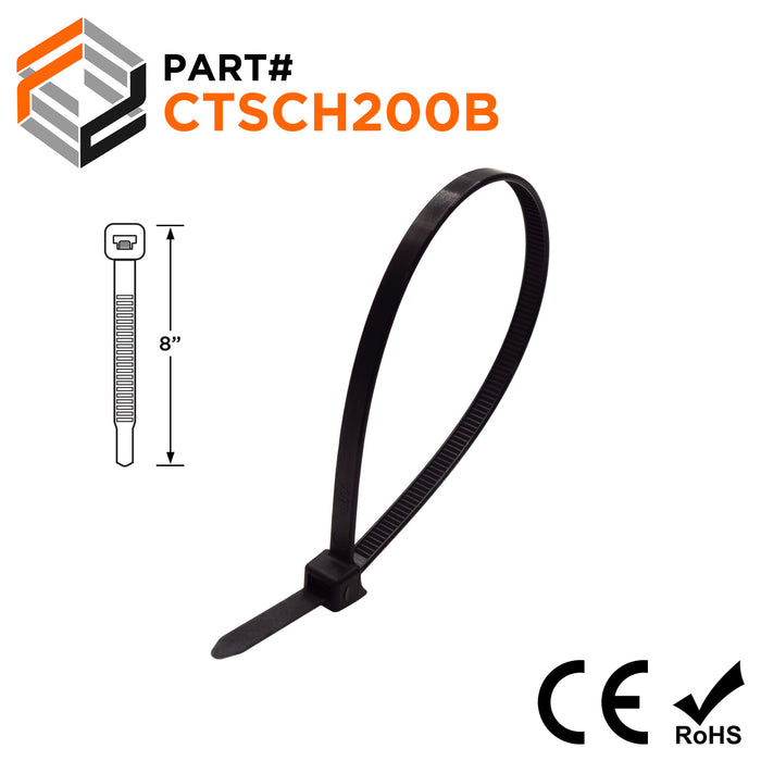 CTSCH200B - 8" Standard Clamp Head Cable Ties, 50-lb Tensile Strength, Black, UV Resistant, 100 Pieces