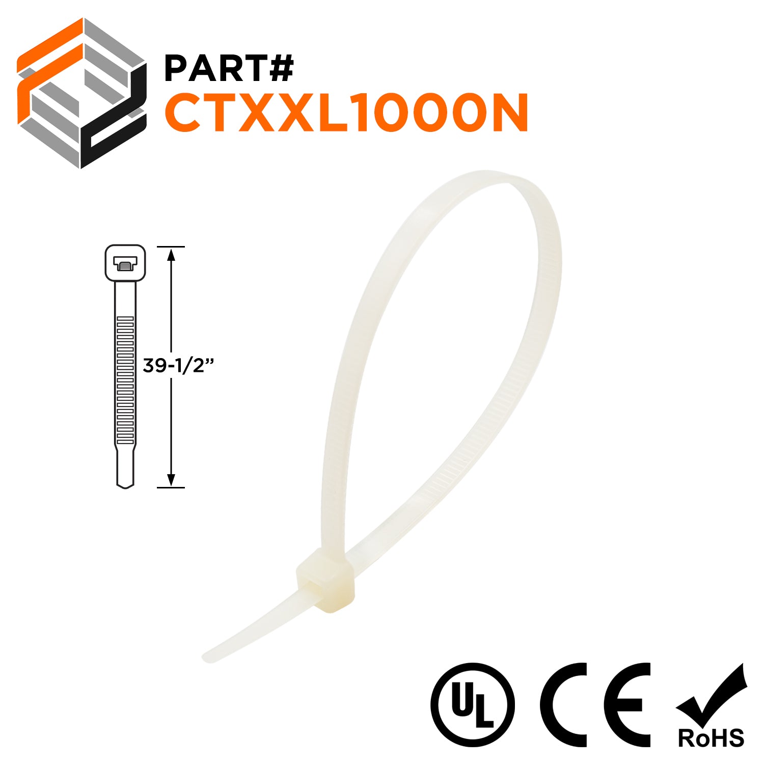 CTXXL1000N - 39-1/2" XXL Heavy Duty Cable Ties, 250-lb Tensile Strength, Natural, 100-Pack