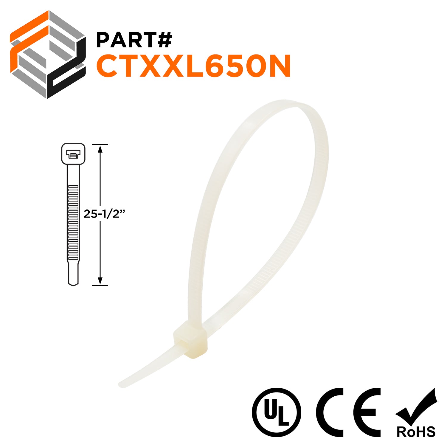 CTXXL650N - 25-1/2" XXL Heavy Duty Cable Ties, 250-lb Tensile Strength, Natural, 100-Pack