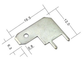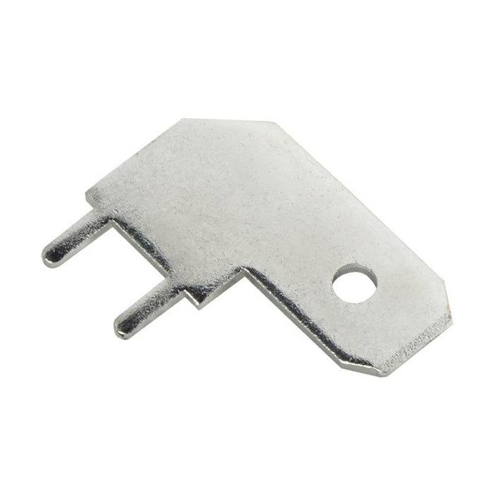 PCB quick connect male solder connector. The male tab fits into a female quick disconnect terminal. The solder tail attaches to your circuit board. Terminals with a built-in tab support prevent side-to-side motion during termination.