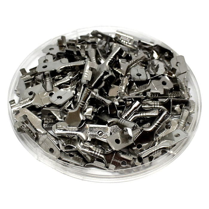 DJ615-6.3x0.8-T - 22 to 18 AWG Tin Plated Brass Male Quick Disconnects, 6.3x0.8mm Tab, 100 Pieces